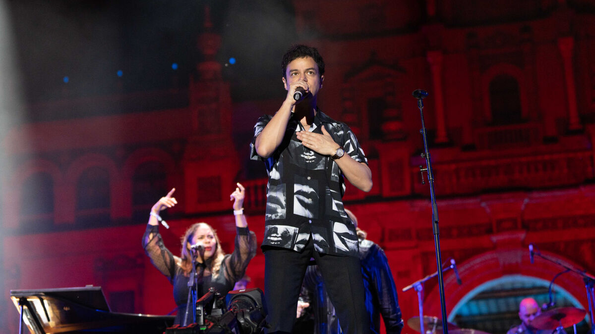 Y comenzó la segunda mitad del concierto, el ecuador de dos horas cronometradas y puntuales según lo pactado por la organización de ICÓNICA. «Este sitio es mágico» decía Cullum, y no se equivocaba. Se reunieron sus extraordinarios músicos al centro del escenario y cantaron de forma minimalista Taller, con predominancia acústica. Y tras esta contención, se derramaron con ritmos mucho más intensos y alegres, pienso en temas como You And Me Are Gone o When I Get Famous, con los que hizo al público levantarse, se subió al piano de nuevo, saltó altísimo, casi como si pretendiera hacer un mate en la luna de Sevilla y ya todo cambió. No diré si empleé mi empatía proyectada de deidad o no… pero se dio una orden desde el micrófono y la audiencia abandonó su posición y se reunieron frente al escenario, sin orden pero con concierto, para celebrar esta gran fiesta como se merece: bailando, sonriendo y cantando, los gerundios más icónicos.