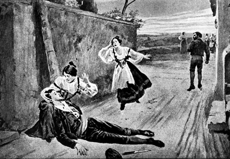 Cavalleria Rusticana muestra la acción en la singularidad humana que la genera. La obra termina con otro grito que anuncia que mataron a Turiddu: «Hanno ammazzato cumpare Turiddu!». No es una voz estilizada en canto la que cierra la ópera. Es un grito, como si representaran en el escenario el papel de cualquiera en su vida cotidiana.