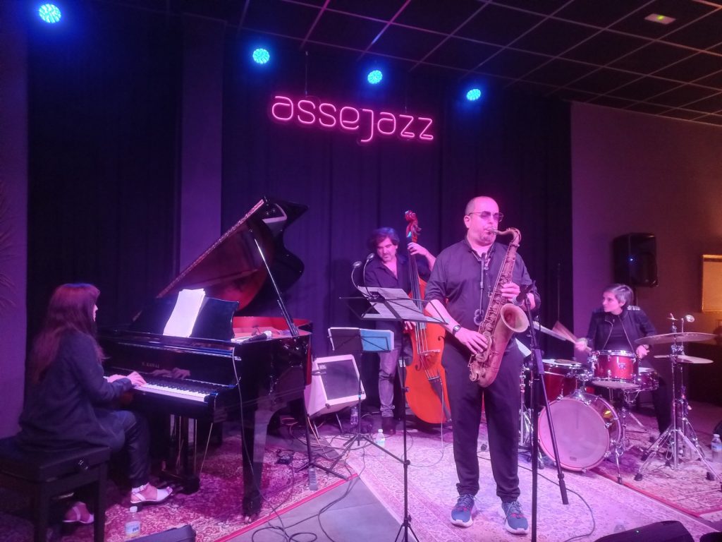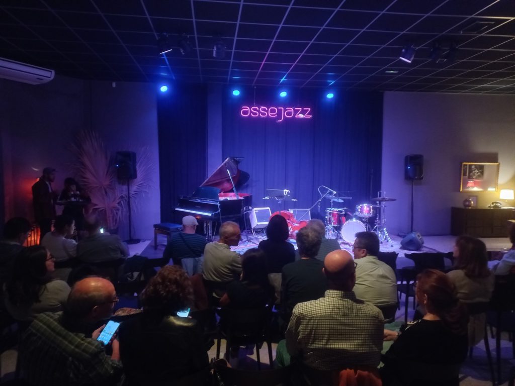 Usaba todo el set de artilugios y detalles sonoros que había instalado (y decorado) su propio instrumento, cambiaba las baquetas por tubos de plástico blando o, incluso, golpeaba los platillos con sus propios puños, cantaba casi para sí, para sumar melodías, repartía golpes en abanico de técnicas propias del estudio y el juego, sin duda, Lucía Martínez, maravilla superior e indómita de la percusión, empleó sus infinitos recursos, más que como ejercicio exhibicionista, para autocomplacerse. Era imposible dejar de observarla atacar cada tema, desde aquí quiero felicitarla especialmente (como si fuese a leer mis diarios terapéuticos…). De hecho, el propio cuarteto creó una frecuencia acústica que secuestró el aforo de Assejazz con tanta eficiencia como generosidad. Estuve tan impresionado tras aquel concierto que me miré los pies, desconfiado, por si allí estuviesen las traicioneras palomas dispuestas a sacarme del sueño a picotazos.