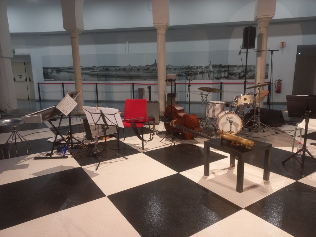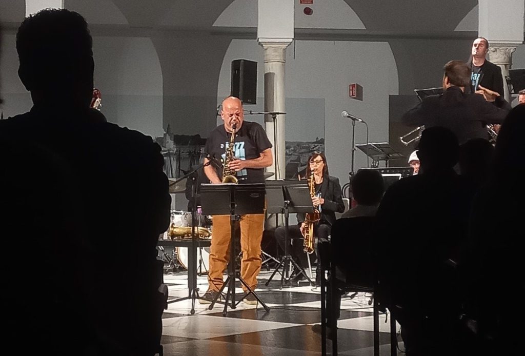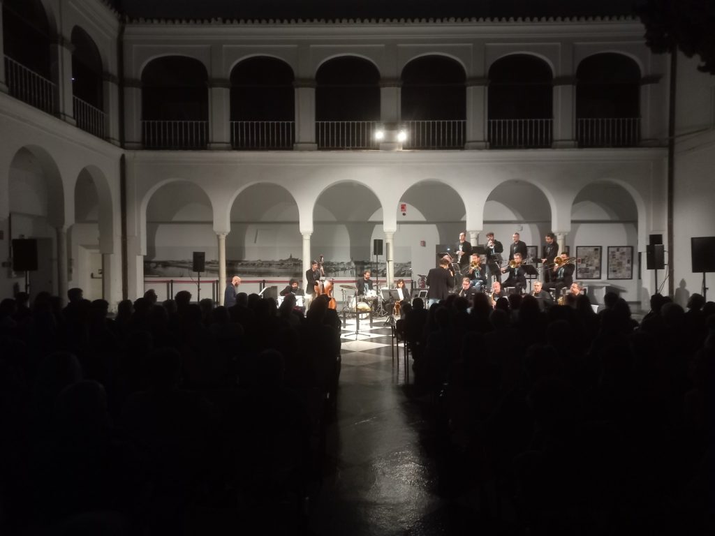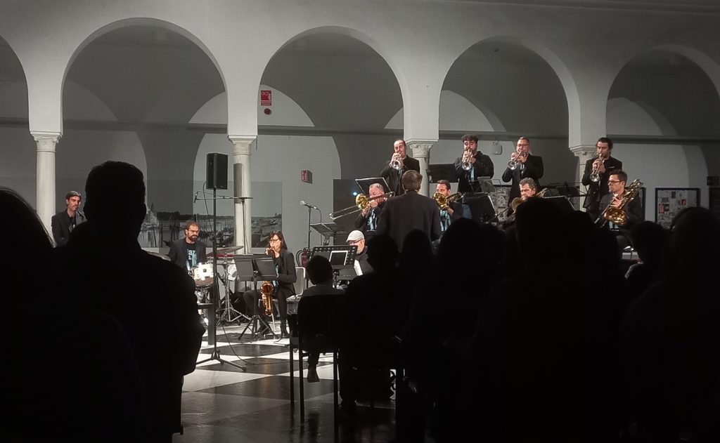 Para los grandes observadores, los sensibles y enfermos del detalle, no pasó por alto el tercero de estos efectos. A medida que tocaban (solo de saxo por aquí, solo de trompeta por allá, mira qué buen trombón, pues anda que mi flauta travesera) se iban acrecentando los astros sobre nuestras cabezas, como si quisiesen asomarse al patio del CICUS a escuchar a estos samuráis de las armonías y tempos (lo mismo me da la metáfora del samurái que la del cortador profesional de jamón, ya me entiendes, todos los músicos andaron finos-finos). Quizás esto explica por qué hasta las baladas fueron luminosas. O también cómo la influencia de las estrellas provocó en una pareja al fondo del público que se levantasen a bailar entre las sombras de la galería. En cualquier caso, las estrellas casi adoptaron el rostro del meteorito exterminador, pero todo a cámara lenta. Había niños en primera fila que las señalaba, felices, por entenderlo como parte del juego (por cierto, un aplauso a los padres que llevan a sus hijos a estos conciertos, ojalá les salgan semidioses, como mínimo).