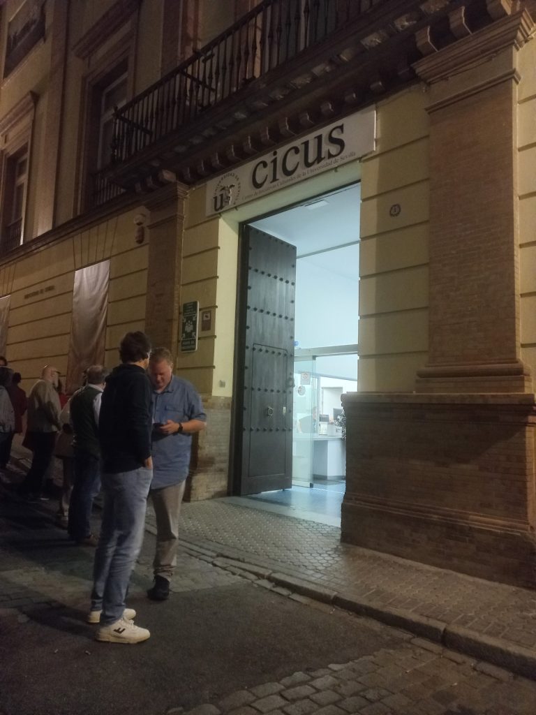 Los astros asoman cada vez más pronto en esta avanzadilla hacia el invierno. La calle estrecha tiene un acceso, a mitad de su extensión, que deriva a un patio interior, rodeado de galerías, que es el renombrado CICUS, todo un punto de referencia cultural en Sevilla. La calle, por la que llegaba a esa declinante hora un aforo dividido entre los que tenían entrada y los que poseían la esperanza de conseguirla a última hora en taquilla, se llama Madre de dios, y cómo no iba a ir esta deidad, esta percha con la que nací yo, Vilama, el trickster, elegantísimo con mi chaqueta y mi fular plateado, dispuesto a colarme con una sonrisa pícara, como si una etérea divinidad materna me hubiese elegido el uniforme. Bonita estampa, eh, nunca sobra un peatón acicalado con buen gusto. Otro tema es mi ausencia de madre, mi creación espontánea como trickster, pero eso ya… otro día.