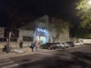 Desperté y me creí aún en el intermedio oscuro del espacio-tiempo. Estaba oscuro y hacía frío en aquella sala. Caminé hasta toparme con un piano de pared, abierto en canal, podía intuir sus percusiones. De nuevo estaba en una sala cuyo escenario estaba a ras del suelo y, frente al mismo, un graderío de butacas para un publico aún por llegar. Los ojos de eidôlon se me hicieron a las sombras, pude comprobar una silla de madera, apenas un atril y una tela al fondo, recreación de un primer plano a un poema incompleto. Caminé hasta la puerta, necesitaba aire fresco, y accedí a un patio exterior en el que pude contemplar la noche sobre una cadena de bombillas cálidas que colgaban entre el edificio y algunos árboles. Comprobé que aquel espacio tan bello y abierto era el TEATRO TNT/ATALAYA.