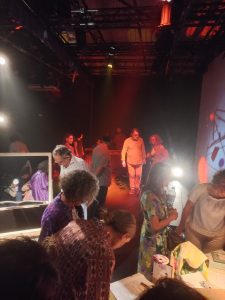 Fue llamativa algunas reflexiones como qué la gente se queje a diario por todo es normal, ese malhumor tóxico, pero alucinar con lo que te rodea, como ponerte extremadamente feliz por cruzarte con una mariposa bonita, pongamos de ejemplo, eso no… Eso debe tratarse. Me dejó pensativo, porque creo que a los que acudimos en busca del Arte como alimento suele gustarnos pequeños detalles que nos llenan mucho, además de usarlo como evasión, salir fuera de esa caja que tan bien describe Teatro de la Catrina.