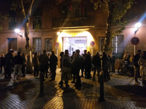 Necesitaba aire como animal terrestre que soy, por lo que salí a la calle una vez más. Mi suerte fue no tener enoclofobia. Una multitud cercaba el cine, todos con tablas de skate bajo el brazo. Algo cambió en el ambiente. Todos echaron sus maderas al suelo y empezaron a patinar en círculo alrededor mía. O puede que yo me posicionara en el centro, no tengo la verdad absoluta. ¿Qué hacen tantos patinadores aquí? El Escuadrón Purga estaba perdido, reconozco que eso me alegró. Como los pájaros, uno cambió de rumbo y todos le siguieron. Iban al encuentro de una película determinada. Como periodista, director (de cine) y fotorreportero sentí que allí había una historia que narrar y me camuflé entre aquellos rodamientos. Por supuesto, caminaba ganando y perdiendo altura, como si pateara el suelo en mi propia tabla. El convoy de patinadores se instaló en una sala y allí murmuraron tecnicismos que me excluían. Parecían poseídos. Y llegó su profeta: Ali Boulala. Patinador profesional, fue niño prodigio del equilibrio y la velocidad. Presentaba junto a Max Eriksson una historia de éxitos, adicciones, muertes cercanas, cárcel y segundas oportunidades. Una suerte de biopic: The scars of Ali Boulala. Era el segundo día que se presentaba y ambas fechas tuvo un gran aforo que llegó por el boca a boca de la comunidad patinadora de Sevilla. Tras la proyección estuvieron una hora a las puertas del cine en conversación con todo aquel que se prestase. Debí vaticinar que esa noche tampoco dormiría temprano.