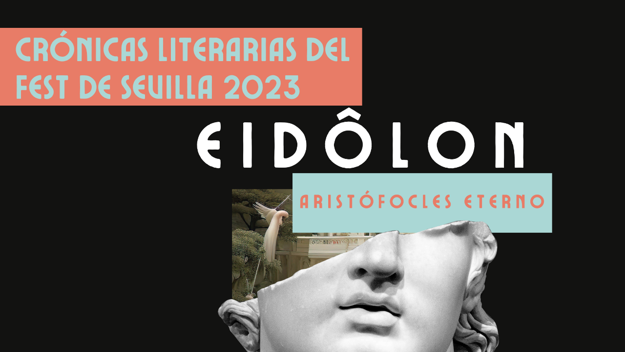 Ejemplo de ello fue su asistencia al gran estreno de Macbeth en el Teatro del Globo o la expectación que causaba Lope de Vega con cada obra nueva. Aristófocles ha sabido interiorizar muy bien estas intermitencias: Aprende todas las novedades y las incluye en sus propias creaciones. En el siglo XVI, popularizada la imprenta en Occidente, se hizo con un libro cuyas páginas estaban en blanco. En él escribe sus obras, y amenaza con reunir la esencia completa del teatro. Cuando se cansa, gira el libro y le da la vuelta: Ahí escribe, en forma de diario, crónicas de las actuaciones que presencia a lo largo del tiempo, a las que ahora tenemos acceso directo, y que se ha contentado en titular:“EIDÔLON – Aristófocles eterno”.