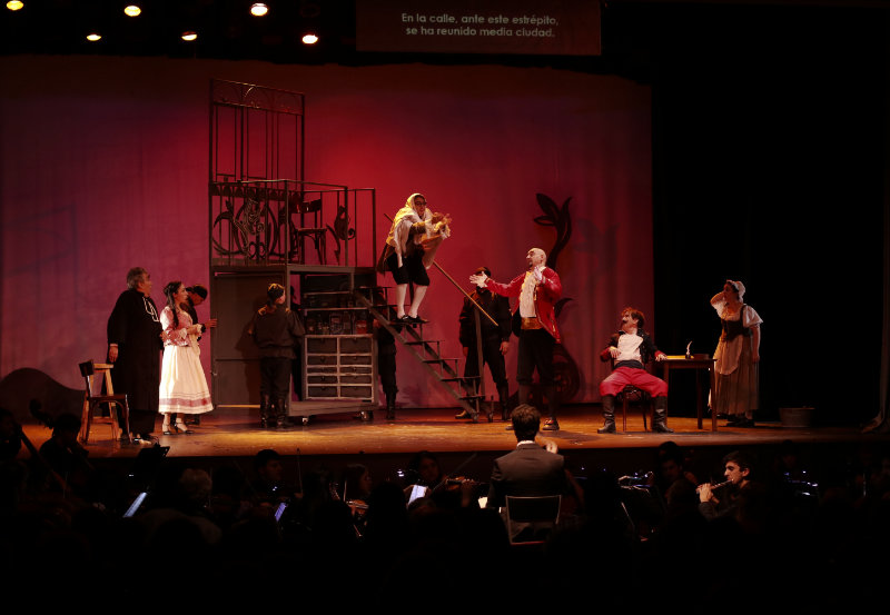 Serenata. Ópera «Il barbiere di Siviglia» de G.Rossini. Teatro Complejo Cultural Plaza, San Martin, Provincia de Buenos Aires, Argentina. 2019. Dirección Escénica: Concepción y Paz Perre. Escenografía: Lucia Santarone. Vestuario: Mariela Daga. Iluminación: Ernesto Bechara. Temporada 2019. Foto: María de la Paz Perre.