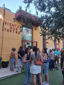 La energía vibrante de aquel lugar era especial, propia de logros justos, cimientos dedicados y mucho calor humano. Sin duda, deduje, un ala de este edificio estaría destinado a ser una escuela de teatro, eso explicaría todo. En aquel vestíbulo en el que reaparecí el sol bañaba mis pies sin sombra y los árboles se mecían con suavidad al otro lado de las puertas. El entorno, casi familiar, no dejaba de sorprenderme: carteles, pancartas, dibujos, relieves: las paredes de aquel espacio bullían de actividad y la única serenidad se hallaría al final del pasillo, en la sala del escenario y las sillas, el espacio donde todo puede pasar. Había vuelto a VIENTO SUR TEATRO.