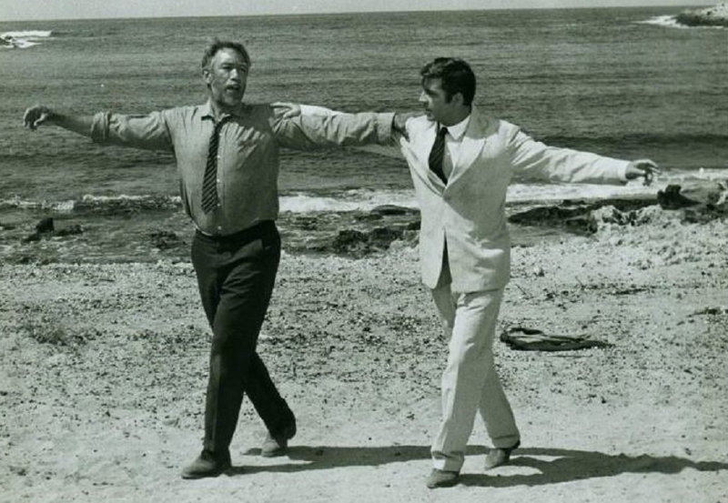 De hecho, hacia el final, Zorba enseñará a bailar a su patrón. Le mostrará cómo vivir, cómo hablar con su cuerpo, cómo olvidar a su hermosa y delicada cabeza por un momento. Y no es casual que ésta sea la escena icónica de la película, didigida por Mihalis Kakogiannis, donde Anthony Quinn interpreta a Zorba, el griego. Si esa escena que todos recordamos: dos hombres amándose virilmente, alegres, danzando frente al majestuoso mar Mediterráneo, después de haberlo perdido todo.